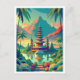Bali Indonesia Art Vintage Travel Illustration Postcard