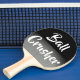 A silver and black ping pong paddle with the text "Ball Crusher". It makes a great gift for the pro ping pong player in the family.