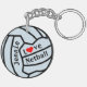Netball ball theme key ring with custom colour and name. Personalised Netball gift ideas for players and fans.