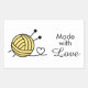 * NOTE * You can customise the colour of the yarn by changing the background colour. A ball of yarn with a pair of knitting needles. The yarn's loose end forms a heart. The phrase reads: "Made with Love".