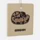 This Christmas ornament features a realistic style illustration of a coiled ball python snake in dark brown and tan. It's ready to be personalised with a name in dark brown lettering. Makes a great gift for pet snake owners.