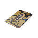 Photograph of a yellow belly ball python curled up into ball, printed to edges of mat.