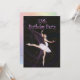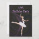 A beautiful ballerina dancing on a birthday party invitation. The ballerina is wearing a white tutu, and is en point.