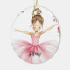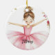Pink Personalised Ballerina Ceramic Ornament with beautiful watercolor rose florals and script lettering.