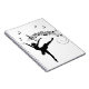 Simple black silhouette of a ballet dancer with fancy music bar and notes