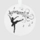 Simple black silhouette of a ballet dancer with fancy music bar and notes