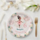 Ballerina Dark Skin Pink Teal Floral Birthday Paper Plate