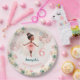 Ballet themed girly Birthday paper plates with the cutest little ballerina with dark skin and hair, balloons and flowers in soft shades of pink, teal and golden beige. Great for any little girl's Birthday. Easily personalise all the text including the number of the Birthday. - Kate Eden Art