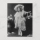 Vintage black and white photo of a woman in ballet pose, holding a basket of flowers. She is wearing a bonnet and dress with copious amounts of lace and frills. She appears to be a ballerina in a theatrical event. From The Bain Collection (LOC)