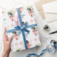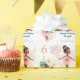 Personalised wrapping paper for a girl Birthday, with the cutest little ballerina with dark skin and hair, balloons and flowers in soft shades of pink, teal and cream on the white background. Easily personalise the text and number of the Birthday. - Kate Eden Art