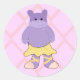A cute purple hippopotamus wearing a tutu and ballet slippers.