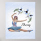 Beautiful ballerina in blue tutu and slippers posed in sitting position.