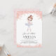 Dance and twirl for the birthday girl! Invite family and friends to your child's birthday with this elegant and whimsical birthday invitation. It features watercolor illustrations of a brunette girl ballerina in a white dress with blush pink and gold flowers. Personalise by adding the celebrant's name and birthday details. Customise the invitation further by changing the back image to a photo or any other image.