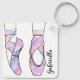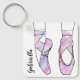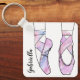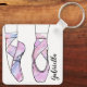 Square keychain featuring the classic ballerina pointe shoes in a pink and purple watercolor print on both sides. A charming gift for ballet dancers or ballet lovers, this design keeps the elegance of the shoes front and centre. Personalise with a name to make it uniquely yours.