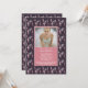 A beautiful invitation offering ballerina silhouettes in two shades of pink and light grey against an ebony background with square zigzag borders. Your sentiments fit under the photo window or just write a name date in the front and continue your message on the ample back panel.
