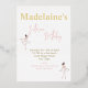 An elegant ballerina in a pink tutu is the main feature on this girls Ballerina Birthday party invitation.