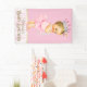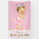 Pink and gold ballerina princess baby shower banner with adorable princess wearing pink tutu, pearls and pretty pink and silver crown on a beautiful pink and gold background. This pink and gold baby shower banner is easily customised with your text in the font style and colour and wording of your choice. You can also change the background colour.