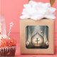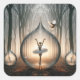 A whimsical artwork of Ballerinas dancing inside of water drops in an eerie forest with doves, printed on stickers.