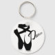 A graphic illustration of ballet pointe shoes on a basic keychain.
