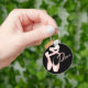 A graphic illustration of ballet pointe shoes on a basic keychain.