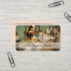 "The Dance Class" (circa 1870) is a work by French impressionist painter Edgar Degas. This product features a detail portion of that painting, which depicts young ballet dancers rehearsing in the old Paris Opera as their instruction carefully observes. The front of the business card features the image in muted, antiqued hues of green, tan, peach, and red. The lower front also has a pale rectangle onto which you can place one line of text such as your name or business. The reverse side of the card is shaded a pale peachy-pink with room for several lines of text, fully customisable using the easy, provided templates.