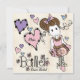 Dance recital invitations featuring a ballet dancer in a pink and brown flowered tutu and ballet slippers surrounded by hearts of pink and purple, blue birds, and flowers! These cute dance recital invitations are easy to customise with your little ballerina's recital specifics!