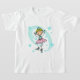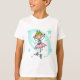 A blonde haired stick figure ballerina in a pink and aqua leotard and tutu with a stars and swirls aqua background on customisable T-shirts, bodysuits, mugs, magnets, tote bags, keychains, cards, and more.