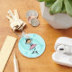 A blrown haired stick figure ballerina in a pink and aqua leotard and tutu with a stars and swirls aqua background on customisable T-shirts, bodysuits, mugs, magnets, tote bags, keychains, cards, and more.