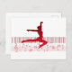 Red Ballet dancer on a keyboard surrounded by musical notes, sharps, flats and a treble clef