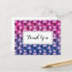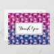 An elegant thank you postcard with a ballet pattern which contains images of a tutu, ballet dress and ballet slippers in pink watercolor. Along with black silhouette ballet shoes and a ballerina all in a repeating pattern. Elegant and classy on a gradient background of pink, blue and purple colours.