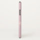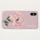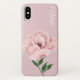 Pretty iPhone X case done in ballet pink with graphics of a big pink flower with green stem. Personalise the white text for yourself or as a great gift idea for her.