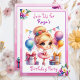 Cute little girl's birthday party invitations. Sweet watercolor illustration of a blonde ballerina in a pink and purple tutu with pretty floral accents.