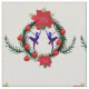 Ballerina, red poinsettia Christmas star flower and holiday wreath.