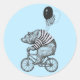 This design features a bear wearing a striped shirt delivering balloons on his bicycle.