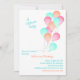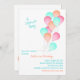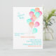 Pretty aqua, coral and pink balloons baby shower invitation. Personalise text as preferred on front and back of invitation.