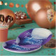 Celebrate the season with joy and color! This fun paper plate features a vibrant mix of purple, blue, and white tones, decorated with festive balloons floating all around. In the center, the elegant Armenian text reads “Happy New Year.”