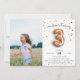 Adorable party invitation's for your little one's third birthday party feature a rose gold "3" balloon on a background of gold, rose gold and black confetti dots. Personalise with your birthday party details in modern and whimsical black lettering, and add a favourite photo of the birthday girl on the left side. Cards reverse to solid blush pink.