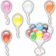6-sticker sheet features pink, red, yellow, white, and orange individual balloons, and one bunch of 10 balloons. This is one of two different 6-sticker sheets of balloons on the LDTreasures store.