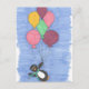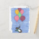 Perfect for all occasions, this whimsical postcard features an illustration of a penguin flying away haning onto a bunch of balloons. So cute!