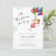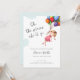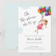 Simple and beautiful girly high school graduation party invitation with an illustration of a girl going away with balloons. Illustrated and designed by Patricia Alvarez.