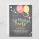 Balloons Kids Birthday Party Chalkboard Invitation