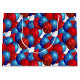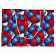 Paper gift bag is shown in a white colour with a glossy finish with a festive blue and red balloons print.