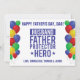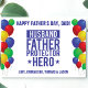 Show appreciation for dad on Father's Day this year with a special card. "Husband Father Protector Hero" in blue with blue, green, yellow and red balloons edging left and right sides on white background. Text templates created for you for front and message on back.
