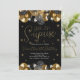 Balloons Surprise Birthday Black Gold Glitter Invitation