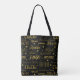 Show everyone your love for ballroom dance by carrying this unique tote. This all-over repeat pattern, in gold faux-glitter look, features the names of many of the major ballroom dance styles, set in typographic fonts that allude to the particular style of dance. Interspersed between the words are different sized stars accenting the design. Dances represented are waltz, tango, foxtrot, cha cha, rumba, jive, east coast swing, quickstep, samba, paso doble, Viennese waltz, mambo, and bolero. This art is designed with a transparent background which allows for you to easily change the background colour - simply select the ‘Customise It!’ button and then choose your desired background colour from the ‘Printed Background Colour’ selected. Pattern is printed on both side of the bag.