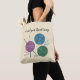 You can use this lovely big tote bag to hold all your knitting and yarn. It's decorated on both sides with a hand drawn image of three balls of wool / yarn in green, blue and pink, and a pair of knitting needles, all on a pale biscuit coloured background. You can personalise the front with your own name and words in a black handwritten script. The bag has a black handle, to match the black script.