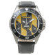 My husband loves the watch, he likes the dial, the graphics, the band, and it keeps perfect time.