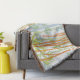 A quality printed throw has its advantages. This is a much finer weave throw than its loopier cousins, and though lighter, it is worth the investment for custom room accessorizing. The back is much prettier than the typical brown, and the fringe on the long sides very vivid, the selvage nicely done. Before photographing, I washed the throw in cold water, delicate, with a thicker woven throw the same size. On tumble dry low, this throw was dry in half the time as the other. This is a very practical quality if you use throws for furniture covers or to wrap up in frequently. The sleekness of the fabric makes it a great layer for accenting or protecting without the feeling of sitting on too much stuff. Perfect for napping or when you feel a light chill coming on. The color printing is beautiful and on this fabric, matched the design and color of my Photoshop image. This is an advantage for blending room fabrics and colors. The fringe on the short sides prints the colors from the design image and therefore varies from the side fringe. I streaked a white fractal line through the plaid pattern to give the illusion of weaving. This printed as crisp as an illusory thread, and put some white in the short side fringe, showing another advantage of print vs loomed- for artistic purposes, line lines, detail, and color integrity can be planned and preserved. My loomed throws have color limitations and more of a needlepoint texture. Print throws reproduce an exact image. The throw felt a little stiff straight out of the package, but this went away in the first delicate wash. Of course I searched the wash water for ink or bleeding and there was none.