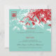 Oriental zen red and turquoise blue bamboo leaves with the double happiness symbol. An elegant and stylish asian themed wedding design which is modern, simple and classy.