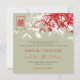 Oriental zen red and moss grey bamboo leaves with a double happiness symbol. An elegant and stylish asian themed wedding design which is modern, simple and classy.